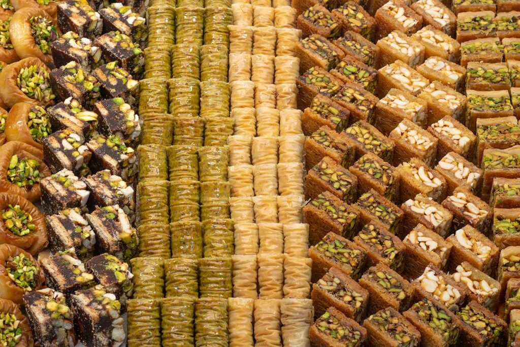 Denk aan groot en klein brood, krokante en zachte broodjes, gebak, taarten, koek, lunchproducten en soms ook specialiteiten zoals baklava of Arabische koekjes.