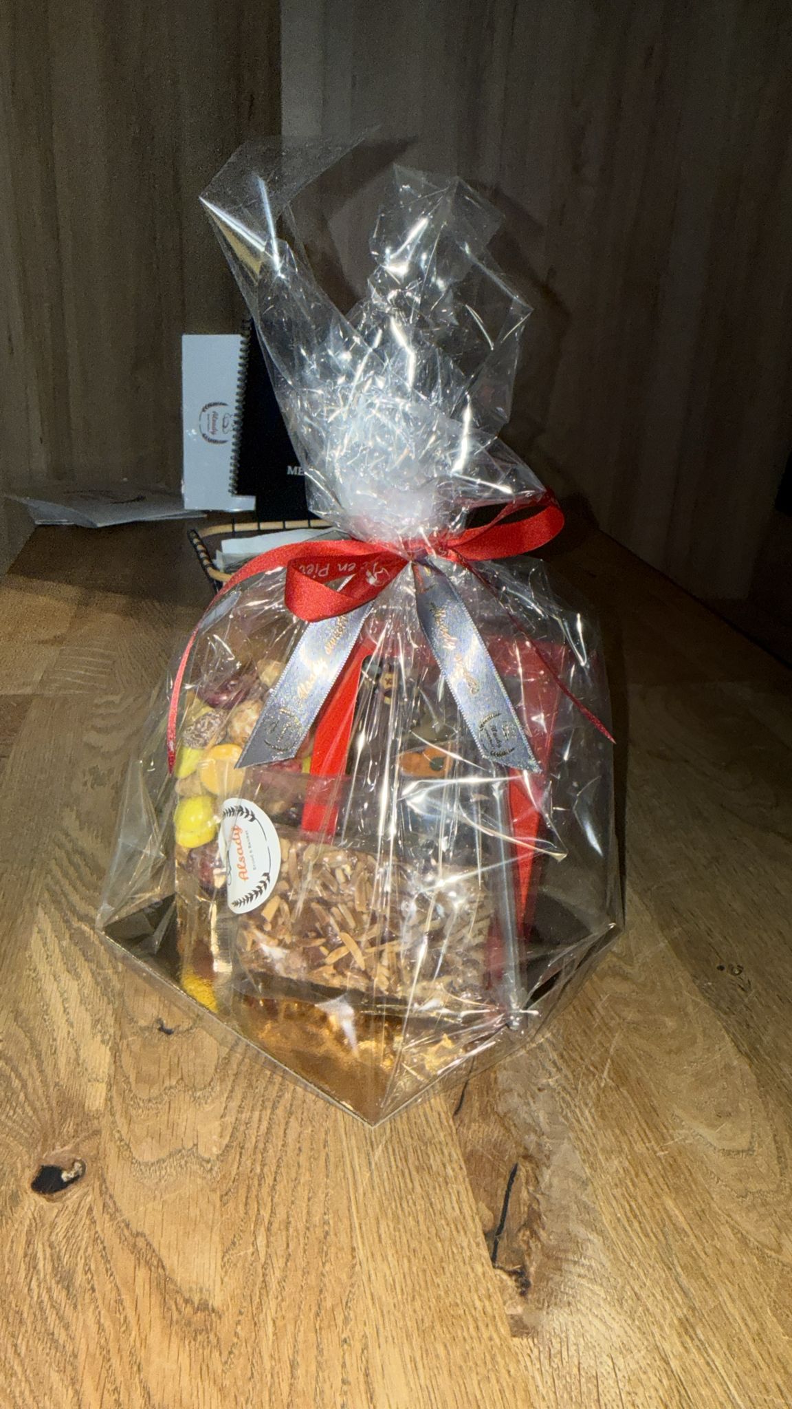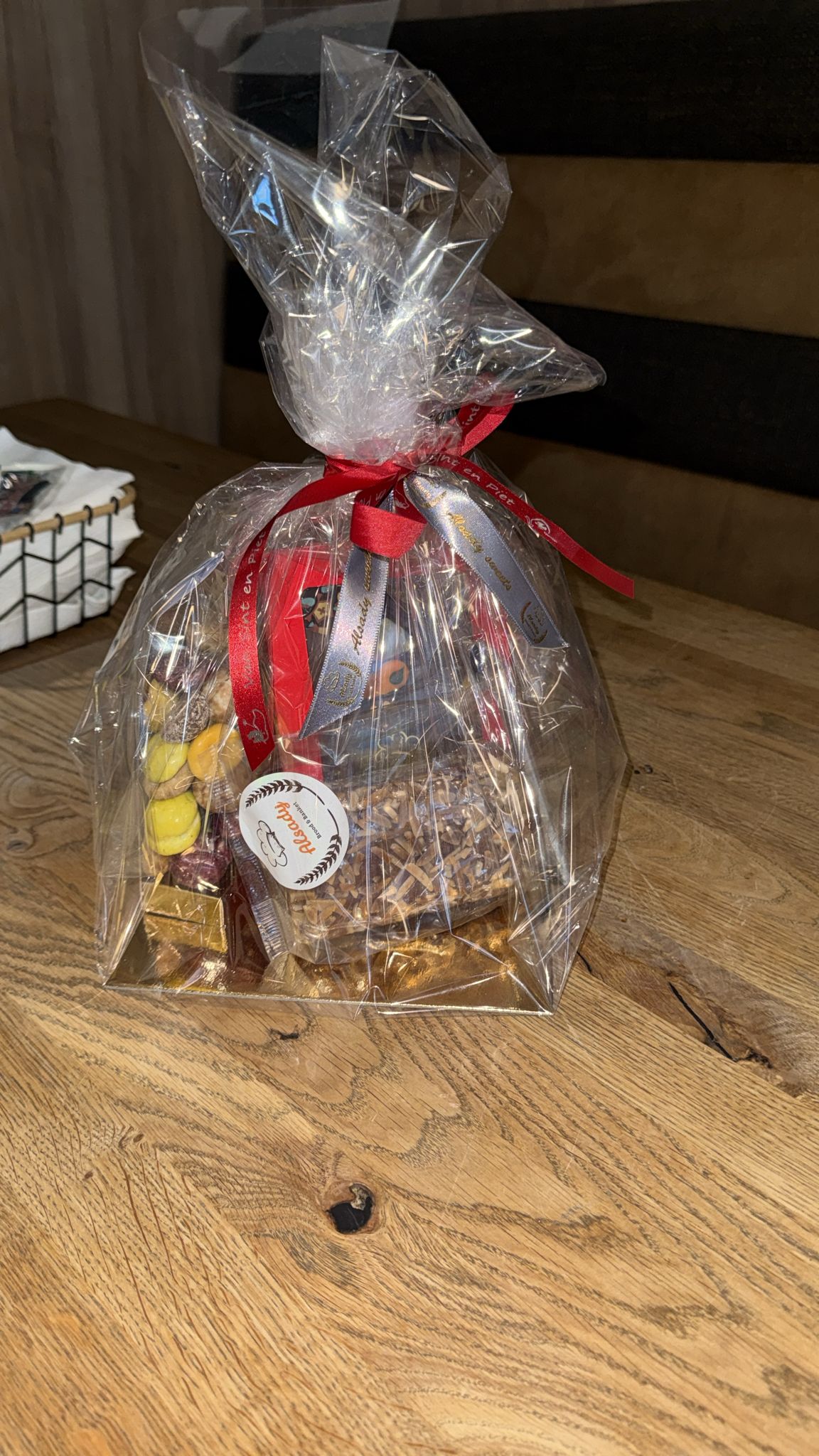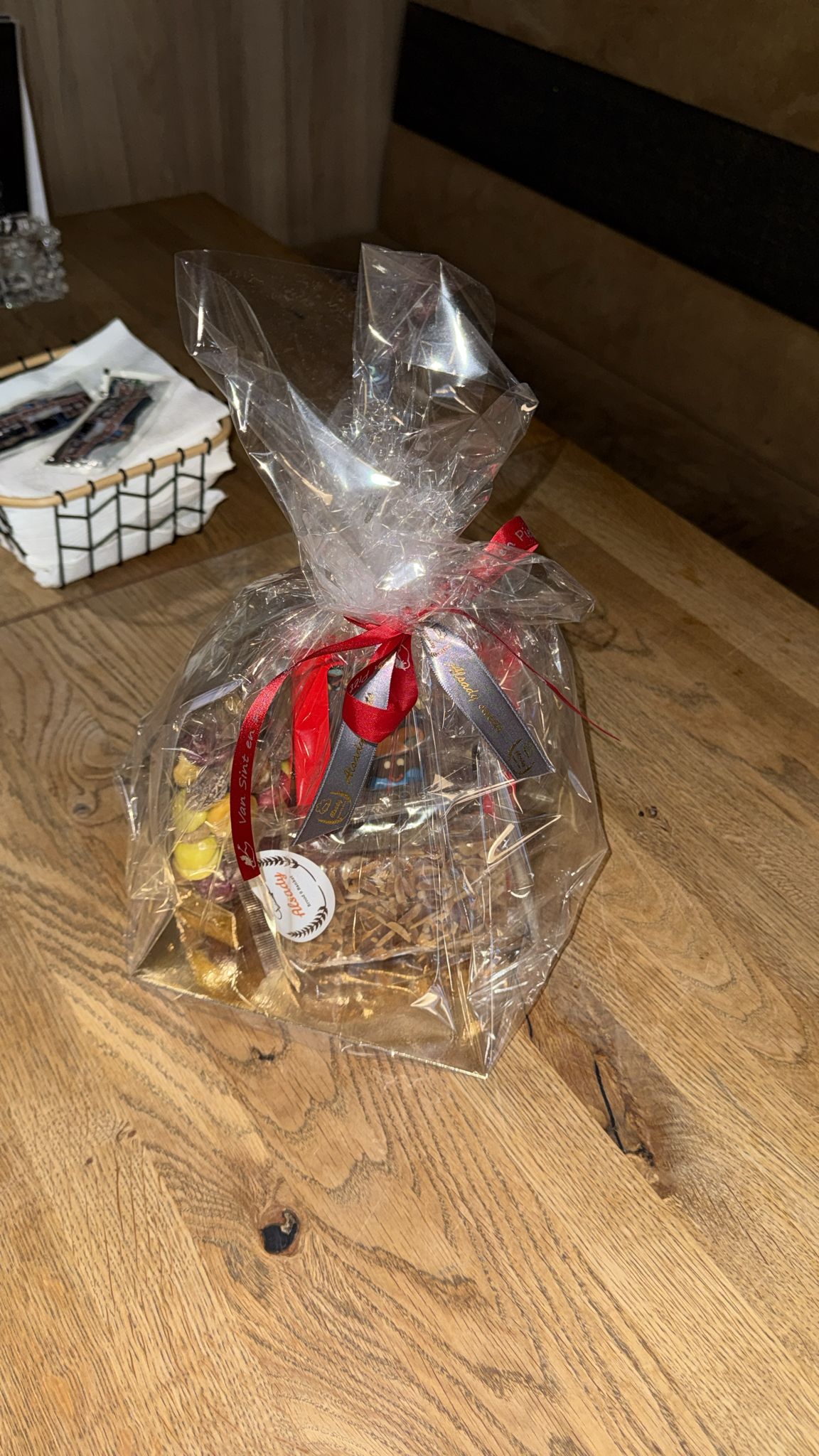Sinterklaas pakket gevuld met gevuld speculaas kleine chocolade letters en gechocolateerde kruidnoten