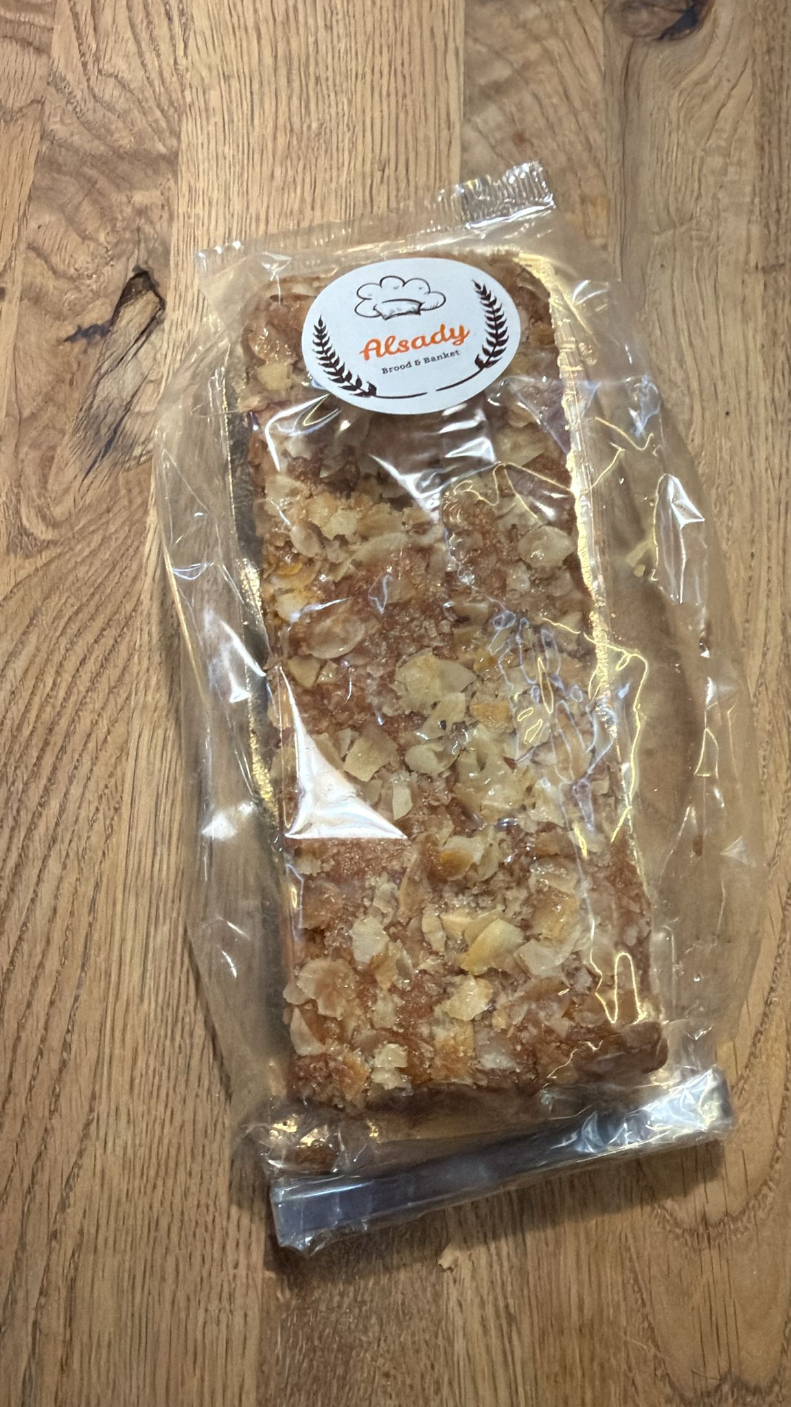 Gevuld met 100% spijs en abrikozen en afgewerkt met amandelschijfjes
